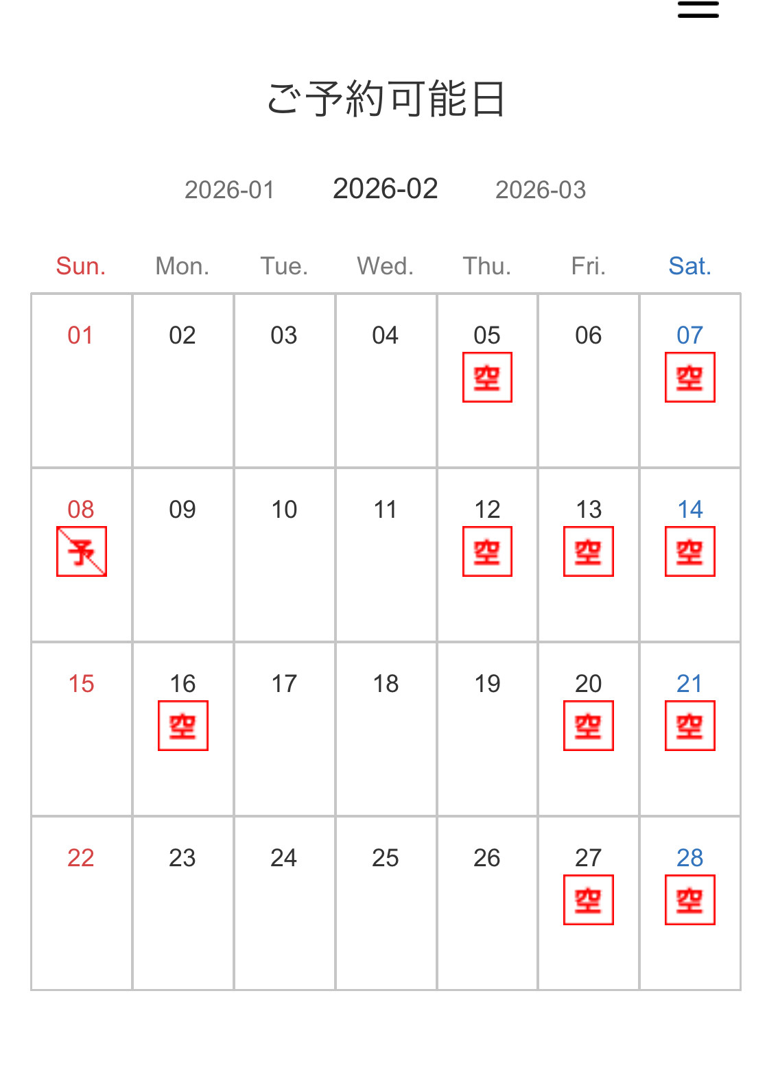 ※<空>が、予約可能日です。